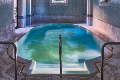 Ponente Baths: The thermal water in the outdoor and indoor pools comes directly from the source. In the outdoor pool, relax while admiring the historic facade, and in the thermal indoor pool, enjoy the possibility of floating. In the relaxation room ("Queen's Baths"), find peace among the ancient fountains, vaulted basins, and magnificent columns. Thermarium area with Turkish bath, sea salt scrub, and thermal mud packs.