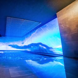 Outdoor mineral water pool, infinity outdoor pool (approx. 36°C), indoor mineral water pool (approx. 38°C), 2 indoor mineral water pools, indoor volcanic mineral water pool with fireplace (approx. 38°C), pool for Kneipp therapy, 2 indoor shock pools, outdoor pool for adults only (coming soon). Modern fitness club with a fitness trainer. The indoor spa area of Pulse Spa is accessible only to visitors aged 14 and over. The large outdoor mineral pool of the spa is also available to children!