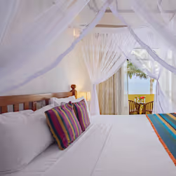 The hotel features just seven rooms, intentionally designed to be simple and soothing. From the private balcony, guests can enjoy an uninterrupted view of the Indian Ocean, accompanied by the calming sound of the waves. Air conditioning in the room is not recommended for Ayurveda, but can be requested for approximately €5 per night (approx. UK £4 / USD $6) on site.