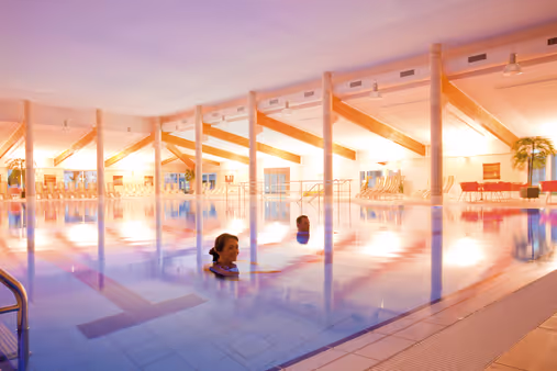 The seawater swimming pool, fed with elaborately filtered Baltic Sea water, features a 25 x 12.5 meter pool, as well as an approximately 70 sqm attraction pool equipped with bubble loungers, seat and floor bubblers, massage jets, and a counter-current system, ensuring the personal well-being of our guests.