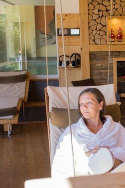 The ideal retreat is offered by the wellness garden with a natural swimming pond, Kneipp path, sunbathing lawn, and waterfall grotto. A special highlight is the outdoor pool (about 77°F) on the roof of the guest house. The light-flooded wellness area (7:30 a.m.-9:30 p.m.) with a panoramic indoor pool (about 86°F), sauna area with sun terrace, steam bath, infrared salt cabin, and relaxation areas provides relaxation with a view of nature. The offer is complemented by massages, cosmetic treatments, and a private spa for individual moments of well-being. A refreshment bar with tea, spring water, and fresh apples completes the experience.